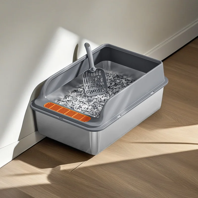 Large stainless steel cat litter box High edge design Leak proof Non stick Rust proof Easy to clean Perfect for cats