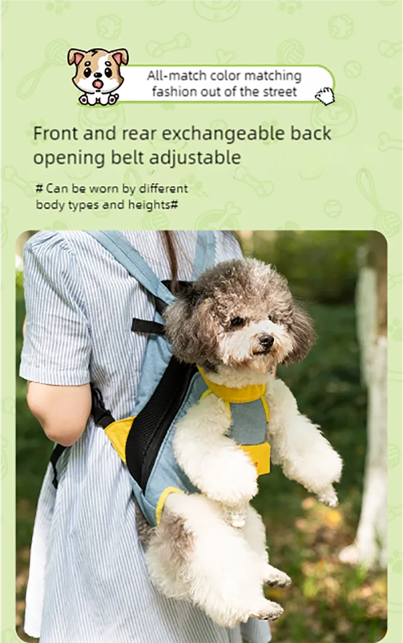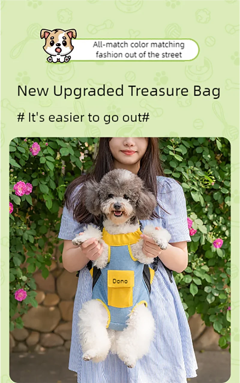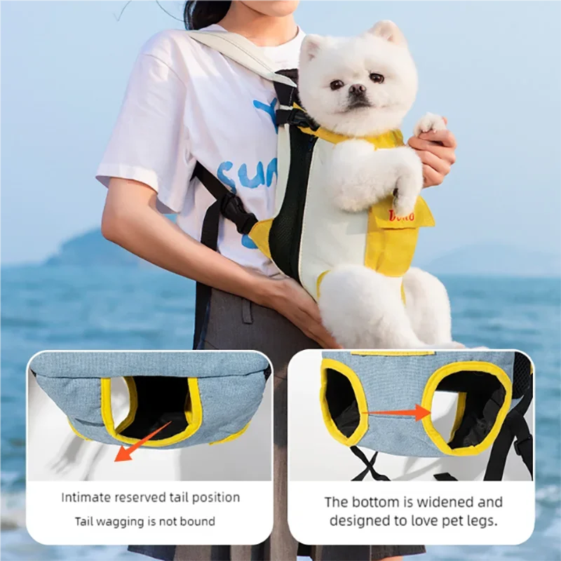 Pet bag portable backpack for outdoor use, dog cat linen cotton chest four legged backpack